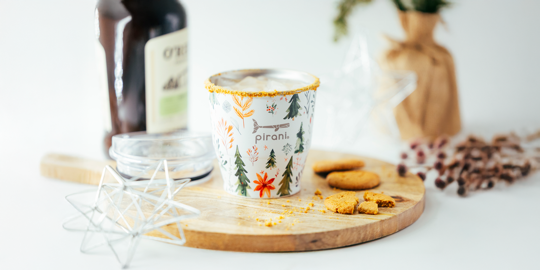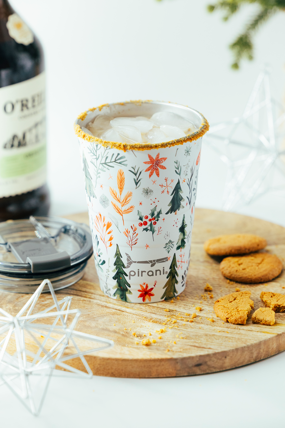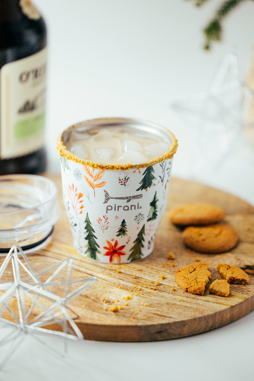 Like all Pirani tumblers, it’s vacuum-insulated to keep your drinks hot or cold for hours, stackable for easy storage, and built to replace thousands of single-use cups. Pair that with a sustainable cocktail,  like our Gingerbread White Russian with a gingersnap rim, and you’ve got the ultimate eco-friendly indulgence for the holidays and beyond.