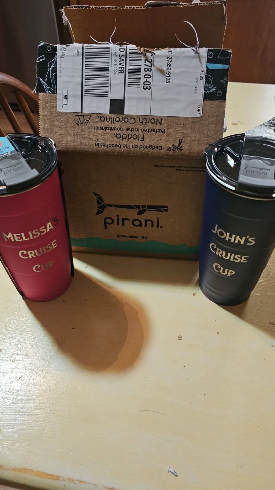 Comes with 1, 26oz engraved Pirani Party Tumbler and 1 lid